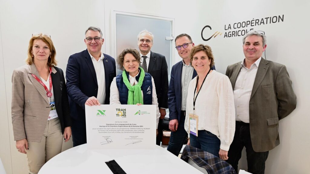 Progresser sur la pérennité des sols et des exploitations avec TRANSITIONSTRANSITIONS est le premier programme à impact à grande échelle en France et en Europe. Ce n’est pas un cahier des charges, c’est un socle de performance et de progrès. Noriap a dupliqué le programme TRANSITIONS en février 2025 avec l’objectif d’accompagner 250 adhérents-coopérateurs d’ici à 2028. Benoît Minard, administrateur Noriap, a rejoint TRANSITIONS by NORIAP pour entretenir son sol dans un objectif à long terme de pérenniser son exploitation. « Le sol est au cœur de TRANSITIONS, indique Bastien Sachet, PDG de Earthworm lors du séminaire annuel de TRANSITIONS qui a eu lieu le 2 octobre 2025 au campus UniLaSalle de Beauvais (60). Le challenge pour l’agriculteur est de nourrir la faune et la flore du sol, mais aussi de nourrir les consommateurs. L’objectif de TRANSITIONS est d’accompagner l’effort initial dû à un réinvestissement dans le sol. Des leviers simples existent comme l’implantation de couverts. » Le sol fait partie des 4 piliers du programme TRANSITIONS by NORIAP avec le climat, la biodiversité et l’eau. Table ronde avec des témoignages d'agriculteurs engagés dans la démarche TRANSITIONS. Photo : Axel Coeuret Sur le pilier eau, la coopérative Noriap s’est rapprochée de la Chambre d’Agriculture de Seine-Maritime pour créer des synergies dans un accompagnement technique partagé. La qualité de l’eau est un enjeu majeur pour ce département qui compte 20 bassins de captage prioritaires, dont trois sur lesquels démarreront les travaux dans le cadre du partenariat entre Noriap et la Chambre d’agriculture 76. La lutte contre l’érosion et le ruissellement, la gestion des intrants,… sont autant de leviers mobilisés par TRANSITIONS by NORIAP. Rappelons que ce programme structurant d’agriculture régénérative est basé sur un socle agronomique rigoureux, certifiable, et piloté par des données mesurées à l’échelle de chaque exploitation (durée de couverture des sols, réduction des émissions de GES, carbone humifié restitué au sol et certification environnementale). Son objectif est de dérisquer l’engagement des agriculteurs dans la transition, en leur garantissant une rémunération incitative grâce à des primes filières pendant 3 ans, versées par une coalition d’industriels partenaires (Tereos, Grands Moulins de Paris, Novial, Cocorette). Zoom sur Benoît Minard, adhérent Noriap engagé dans TRANSITIONS by NORIAP : Benoît Minard, agriculteur en Seine-Maritime (76) et administrateur Noriap a rejoint TRANSITIONS by NORIAP. Installé en 2017, son exploitation est située sur des terres inondables. Benoît Minard a redécouvert des qualités à la biodiversité et aux cultures. « L’objectif de mon installation est de pérenniser mon exploitation, explique-t-il. Ma priorité est d’entretenir mon outil de travail, le sol. » Il a dû s’adapter en diversifiant son assolement. Désormais, il y a une douzaine de cultures sur son exploitation qui compte 200 hectares. « L’euro qu’on gagne, c’est l’euro qu’on ne dépense pas », ajoute-t-il. Quand il sort dans ses champs, il se doit d’être efficace. Il s’appuie sur des OAD pour le suivi de la santé des végétaux comme Xarvio ou le pilotage de la fertilisation azotée avec Farmstar. Cela a nécessité des investissements dans un système de GPS et un épandeur à engrais. Mais il économise des quantités d’azote et des produits de protection des plantes. « Nous avons redécouvert des qualités à la biodiversité et aux cultures. TRANSITIONS est la reconnaissance du travail de mon père. Je suis aussi accompagné par ma coopérative et je suis confronté à d’autres agriculteurs. » https://youtu.be/HF86SNUbqRs Zoom sur Jérémy Ortillon, agriculteur coopérateur VIVESCIA engagé dans TRANSITIONS by VIVESCIA : Jérémy Ortillon, agriculteur en Haute-Marne (52) et associé coopérateur VIVESCIA, coopérative du quart Nord Est de la France, fait partie de la 2ème promotion du programme TRANSITIONS by VIVESCIA. Depuis deux ans, il sème un couvert de trèfle, vesce et fenugrec dans ses colzas. Après la récolte du colza, le trèfle est toujours présent pour capter le CO2 et l’azote pour le restituer au sol. Puis il implante du blé sur le trèfle broyé. « Le trèfle est là en soutien, explique Jérémy Ortillon. C’est difficile d’implanter deux cultures en même temps sans être en concurrence. Je teste, j’apprends, ... Je confronte mes expériences avec les autres agriculteurs de la promotion. » C’est aussi ça le programme TRANSITIONS.